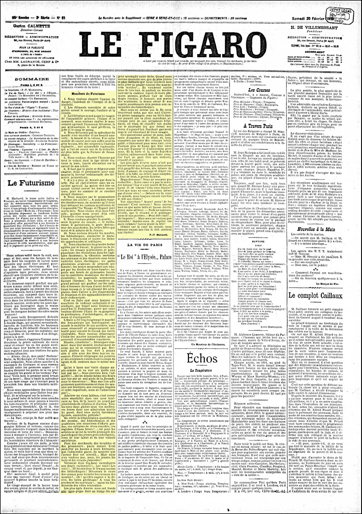Revision as of 12:26, 8 October 2017 by Dusan (talk | contribs) (Dusan uploaded a new version of "File:Marinetti FT 1909 Manifeste du Futurisme.jpg")