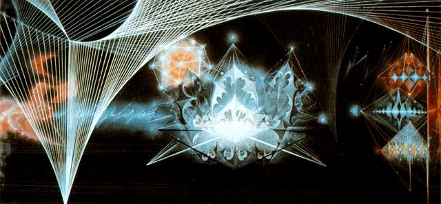 Grigoriev Alexander 1967 Kinetic object Copper rod nylon thread lights.jpg