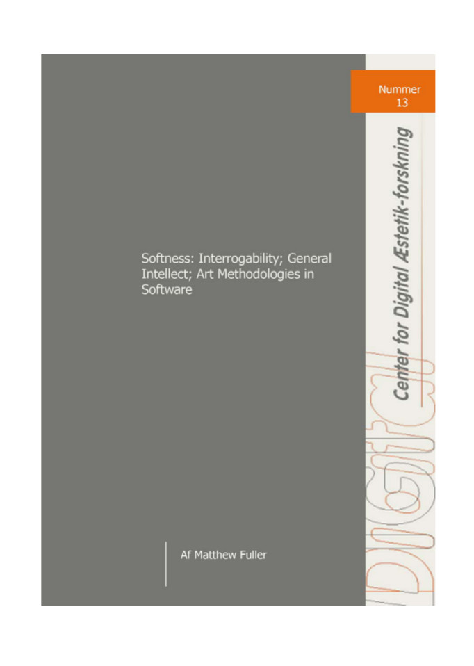| 09:24, 1 June 2013 | Fuller Matthew Softness Interrogability General Intellect Art Methodologies in Software.pdf (file) | 396 KB | Dusan | 1 | ||