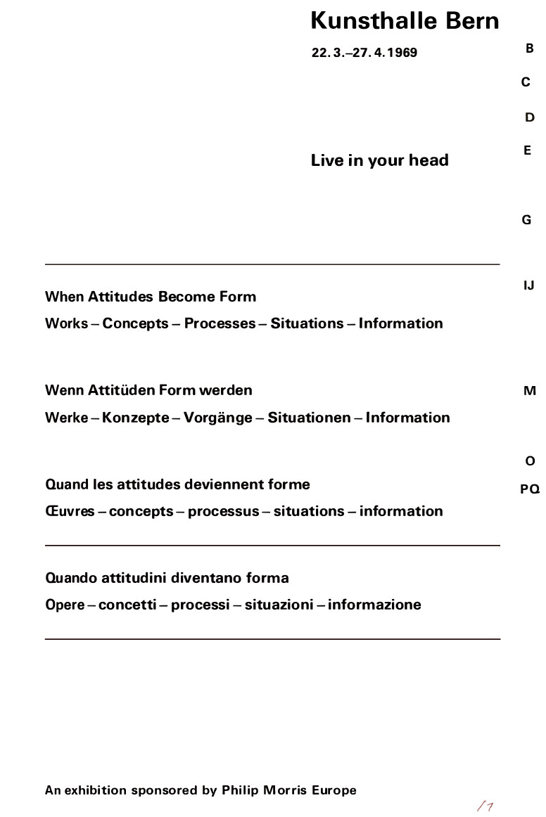 | 10:50, 4 June 2013 | Szeemann Harald Live in Your Head When Attitudes Become Form.jpg (file) | 75 KB | Dusan | 1 | ||
