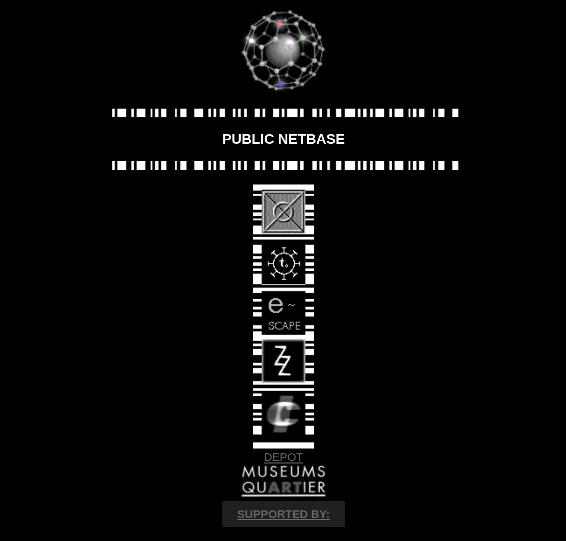 | 21:45, 9 September 2024 | Net condition 1999.png (file) | 19 KB | [http://web.archive.org/web/20040302150409/http://www.zkm.de/netcondition/ Source]. | 1 | |