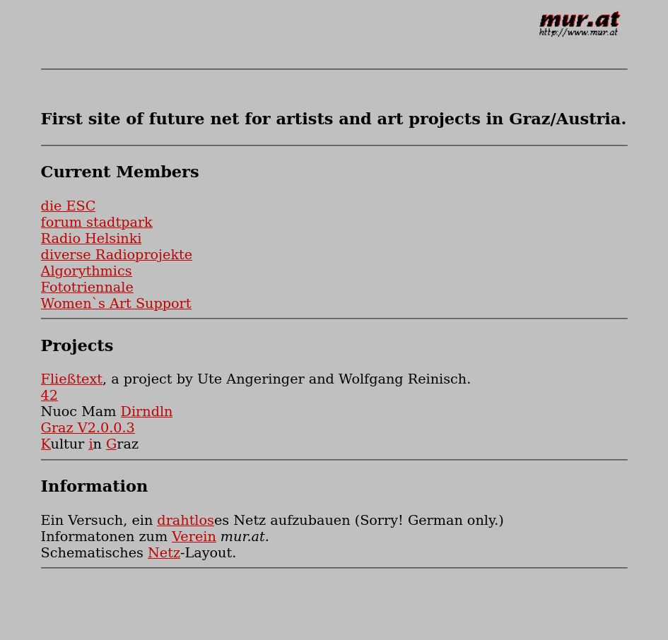 | 12:13, 8 September 2024 | Mur.at 2000.png (file) | 89 KB | [http://web.archive.org/web/20000304120435/http://www.mur.at/ Source]. | 1 | |